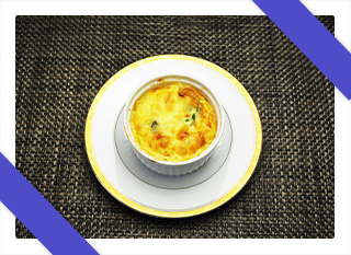 - ココット皿に5を入れ、残りのチーズをかけ、180度のオーブンで20分焼く。